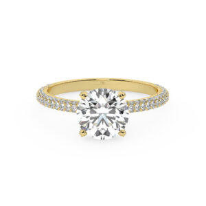 50% הנחהטבעת אירוסין סוליטר ויהלומים בצדדים דגם 50012 זהב צהוב 14 קראט במרכז זירקוניה 2 קראט בחיתוך עגול מסביב ובצדדים זירקונים בחיתוך עגול