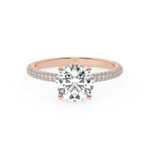 50% הנחהטבעת אירוסין סוליטר ויהלומים בצדדים דגם 50012 זהב אדום רוזגולד 14 קראט במרכז זירקוניה 2 קראט בחיתוך עגול מסביב ובצדדים זירקונים בחיתוך עגול