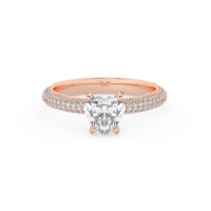 50% הנחהטבעת אירוסין סוליטר ויהלומים בצדדים דגם 50012 זהב אדום רוזגולד 14 קראט במרכז זירקוניה 2.50 קראט בחיתוך לב מסביב ובצדדים זירקונים בחיתוך עגול