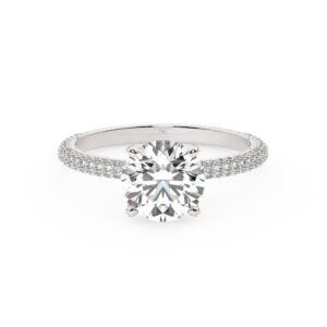 50% הנחהטבעת אירוסין סוליטר ויהלומים בצדדים דגם 50012 זהב לבן 14 קראט במרכז זירקוניה 2.50 קראט בחיתוך עגול מסביב ובצדדים זירקונים בחיתוך עגול