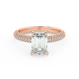 50% הנחהטבעת אירוסין סוליטר ויהלומים בצדדים דגם 50012 זהב אדום רוזגולד 14 קראט במרכז זירקוניה 2.50 קראט בחיתוך אמרלד מסביב ובצדדים זירקונים בחיתוך עגול