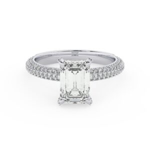 50% הנחהטבעת אירוסין סוליטר ויהלומים בצדדים דגם 50012 זהב לבן 14 קראט במרכז זירקוניה 2.50 קראט בחיתוך אמרלד מסביב ובצדדים זירקונים בחיתוך עגול