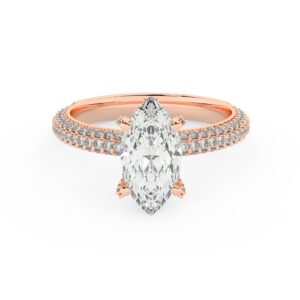 50% הנחהטבעת אירוסין סוליטר ויהלומים בצדדים דגם 50019 זהב אדום רוזגולד 14 קראט במרכז זירקוניה 4 קראט בחיתוך מרקיזה מסביב ובצדדים זירקונים בחיתוך עגול