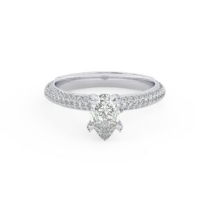 50% הנחהטבעת אירוסין סוליטר ויהלומים בצדדים דגם 50019 זהב לבן 14 קראט במרכז זירקוניה 4 קראט בחיתוך טיפה מסביב ובצדדים זירקונים בחיתוך עגול