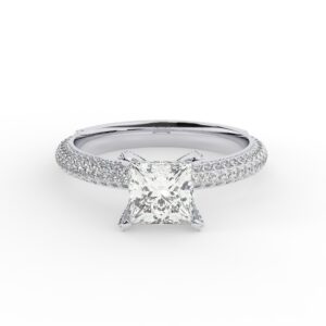 50% הנחהטבעת אירוסין סוליטר ויהלומים בצדדים דגם 50012 זהב לבן 14 קראט במרכז זירקוניה 2.50 קראט בחיתוך פרינסס מסביב ובצדדים זירקונים בחיתוך עגול